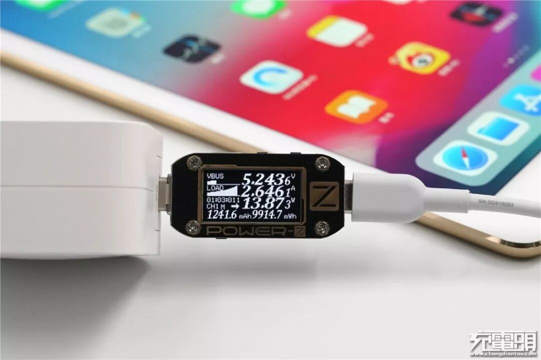 充iPad Air2,电压5.24V,电流2.64A,功率13.87W,开启Apple 2.4A充电模式。