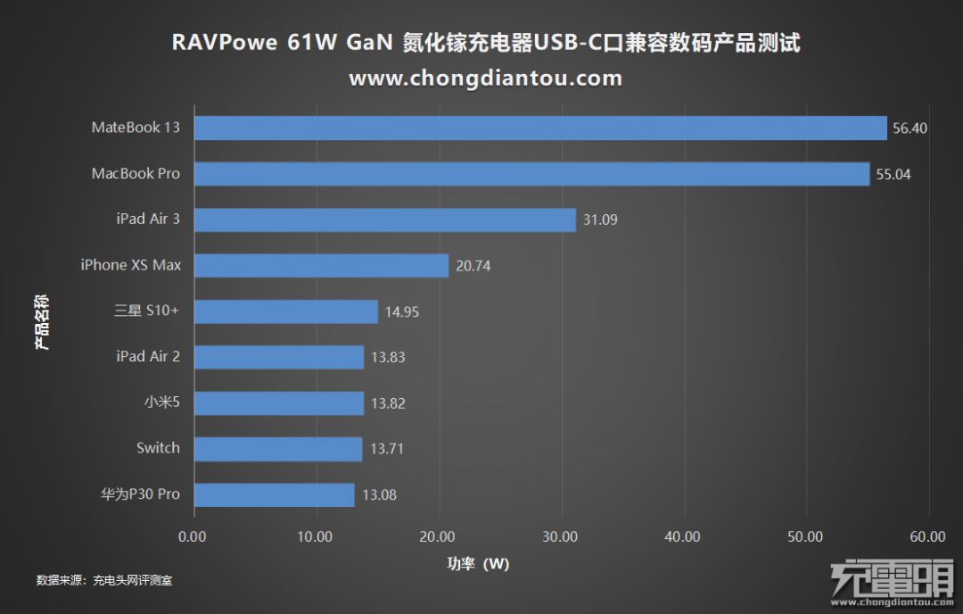 RAVPower 61W GaN 氮化镓充电器兼容性不错,皆可为支持PD、QC快充的数码产品开启快充。