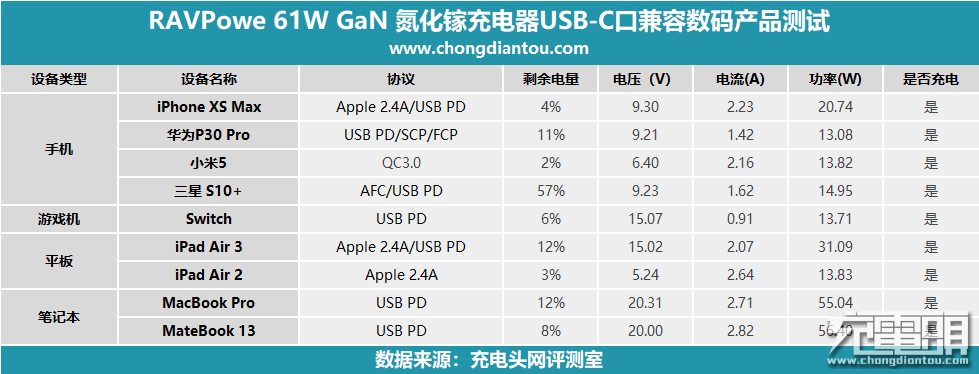 二、RAVPower 61W GaN 氮化镓充电器测试