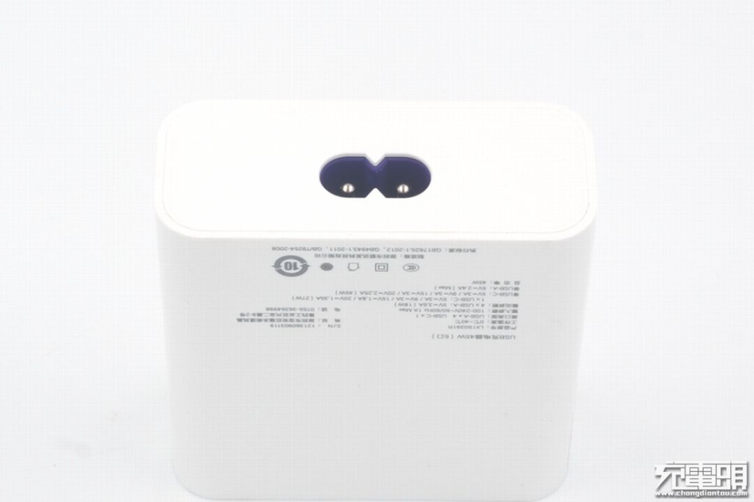 让我们来看下和紫米的45W单C口充电器进行对比,大了一圈但是多出了4个A口。