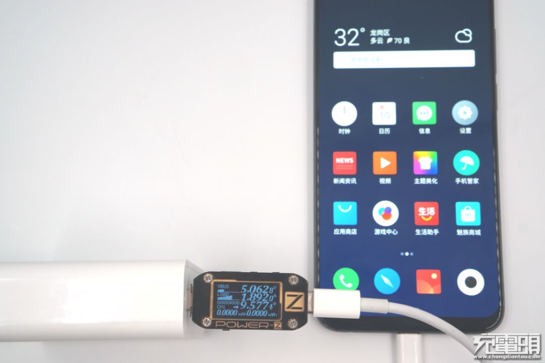 测试魅族16th Plus,功率接近10W,JDB该充电器不支持PE快充。
