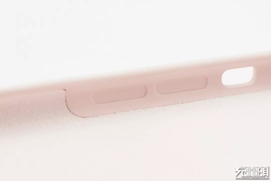 侧面为两个大小相同的音量按键以及苹果经典的静音键位开孔,同样没有任何毛边的迹象,开孔部分还做了倾角式的特殊处理,看起来没有那么突兀,圆润了许多。