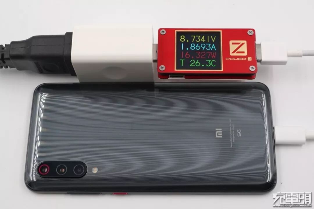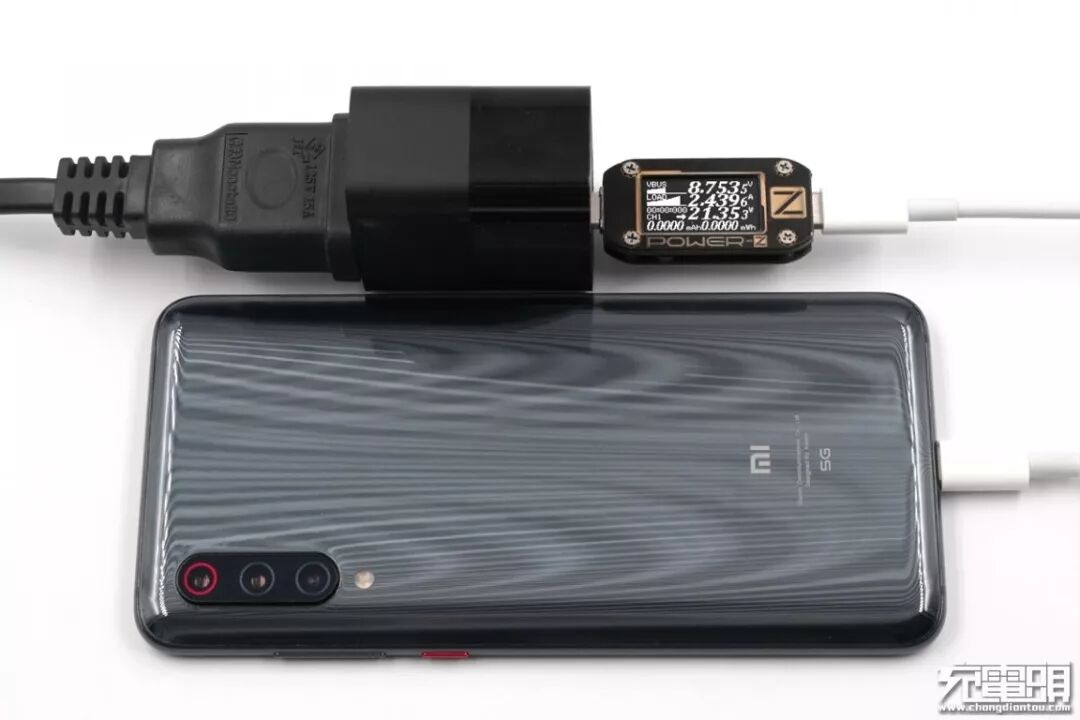 使用紫米1A1C30W充电器为小米9 Pro 5G充电,功率为8.75V2.43A 21.35W。握手PPS快充。