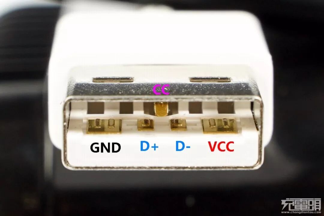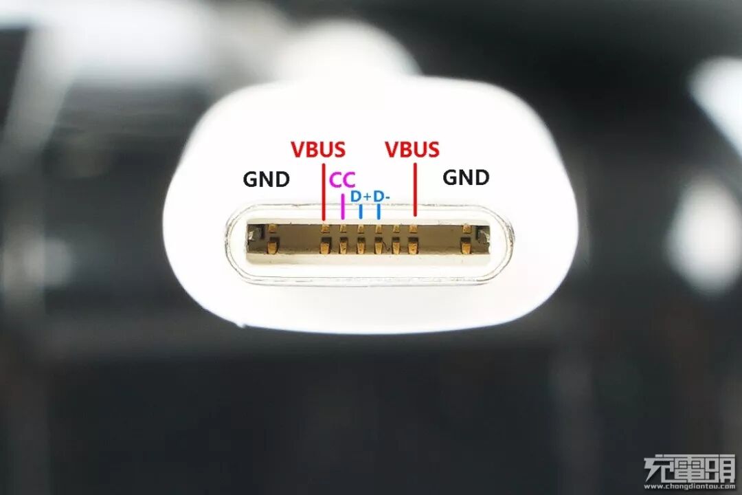 USB-C接口为常规的USB 2.0接头,16PIN设计,紫色标注的那一根就是USB PD通讯必须的CC引脚弹片。
