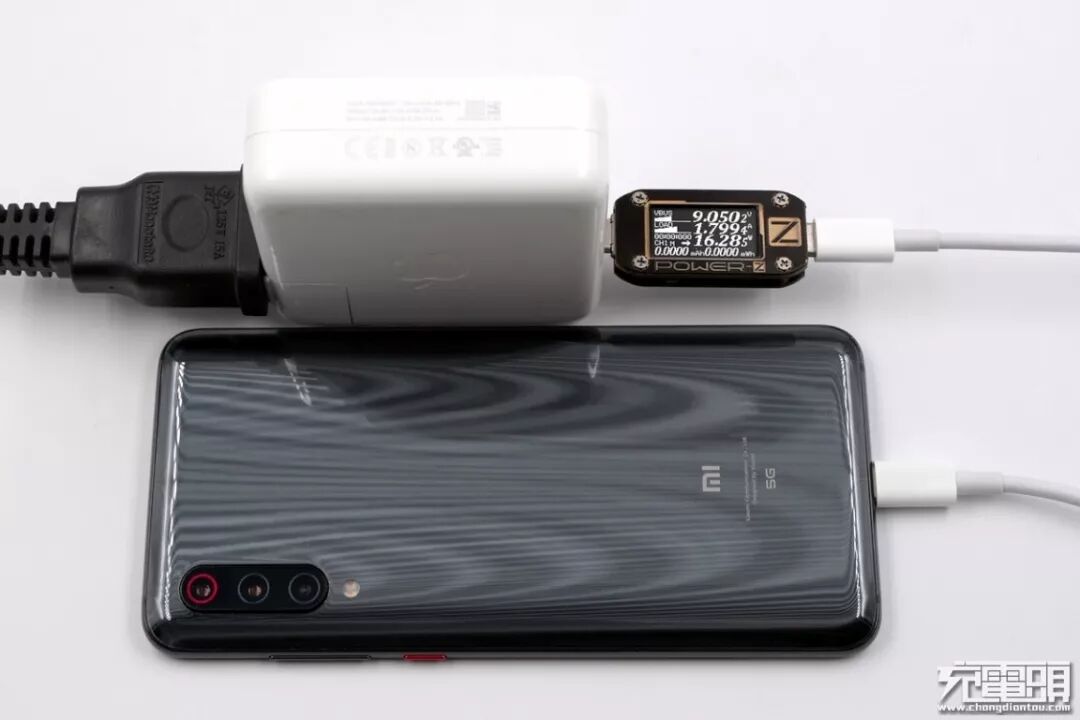 使用苹果61W充电器为小米9 Pro 5G 充电,功率为9.05V1.79A 16.28W,握手PD快充。
