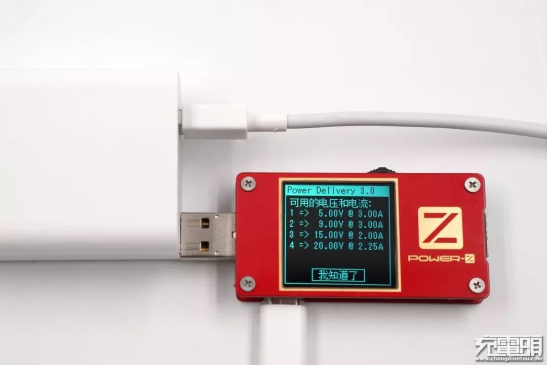 使用原装数据线进行PDO读取,拥有5V3A / 9V3A / 15V2A / 20V2.25A四个固定输出档位,看来这枚充电器真的可以支持PD。