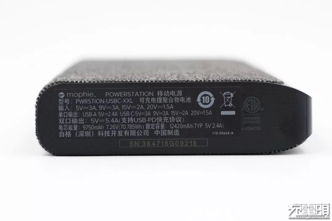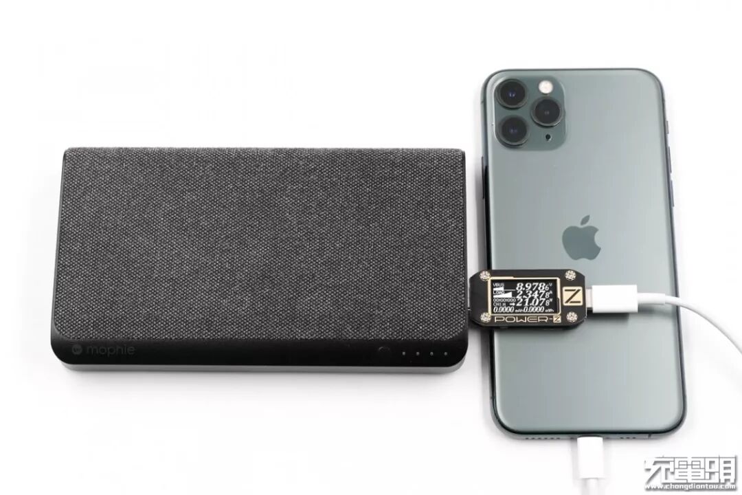 性能方面,USB-A接口和USB-C接口均支持快充,带有闪电快充标识,其中USB-A支持Apple2.4A快充协议,USB支持双向PD快充,最大输出输入功率可达30W。快速充满设备同时自身也可快速回血,双口支持同时输出,19500mAh大电池容量,续航更持久。在小编做的三种功率输出测试中,可以看到输出状态一直都很稳定,由此可见mophie产品的过硬的质量。