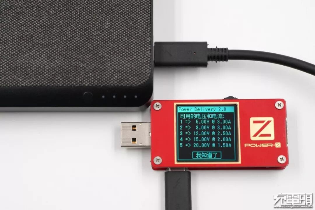 对USB-C接口进行PDO检测,可以看到支持PD2.0快充协议,支持5V3A、9V3A、12V2.5A、15V2A、20V1.5A 5个档位。