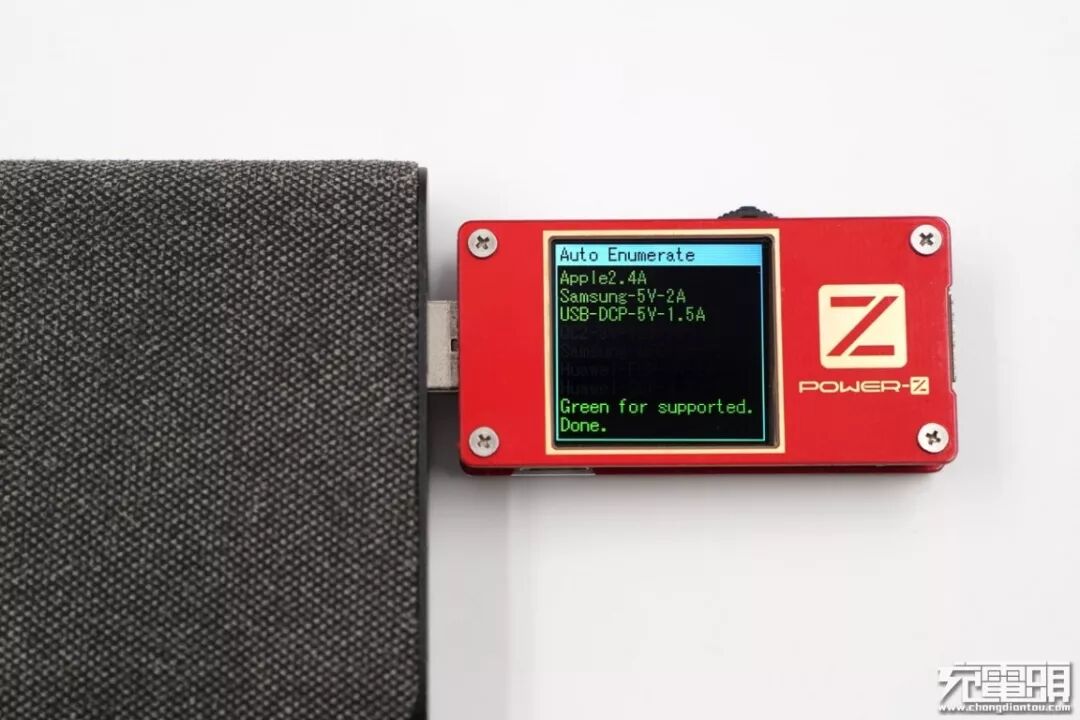 用Power-Z KT001对移动电源的USB-A进行快充协议检测,可以看到USB-A接口支持Apple2.4A快充协议。