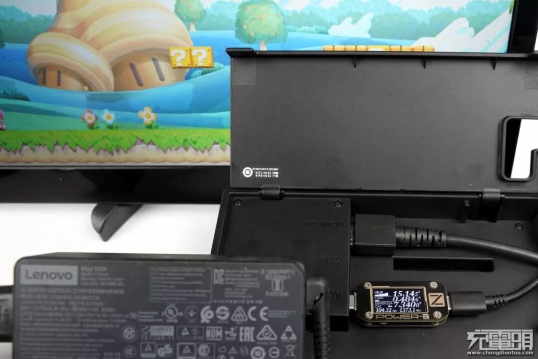 Lenovo联想ADLX65YLC3A给任天堂Switch国行版充电,底座TV模式下成功握手15V档位,电压为15.14V,电流为0.484A,功率7.34W,成功开启底座TV模式功能。