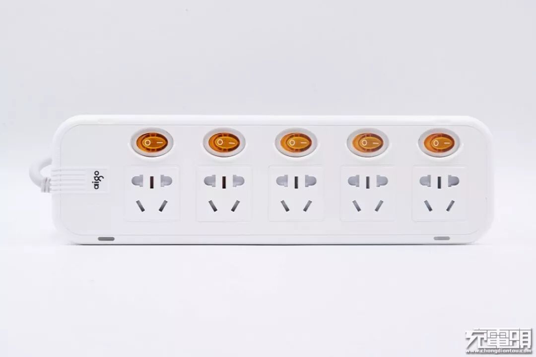 aigo爱国者五位分控插线板每一个插孔都配置了一个独立开关,多设备使用时方便用户对每一个设备通电、断电进行操作,相比起全部插孔只使用一个开关来说更加灵活。