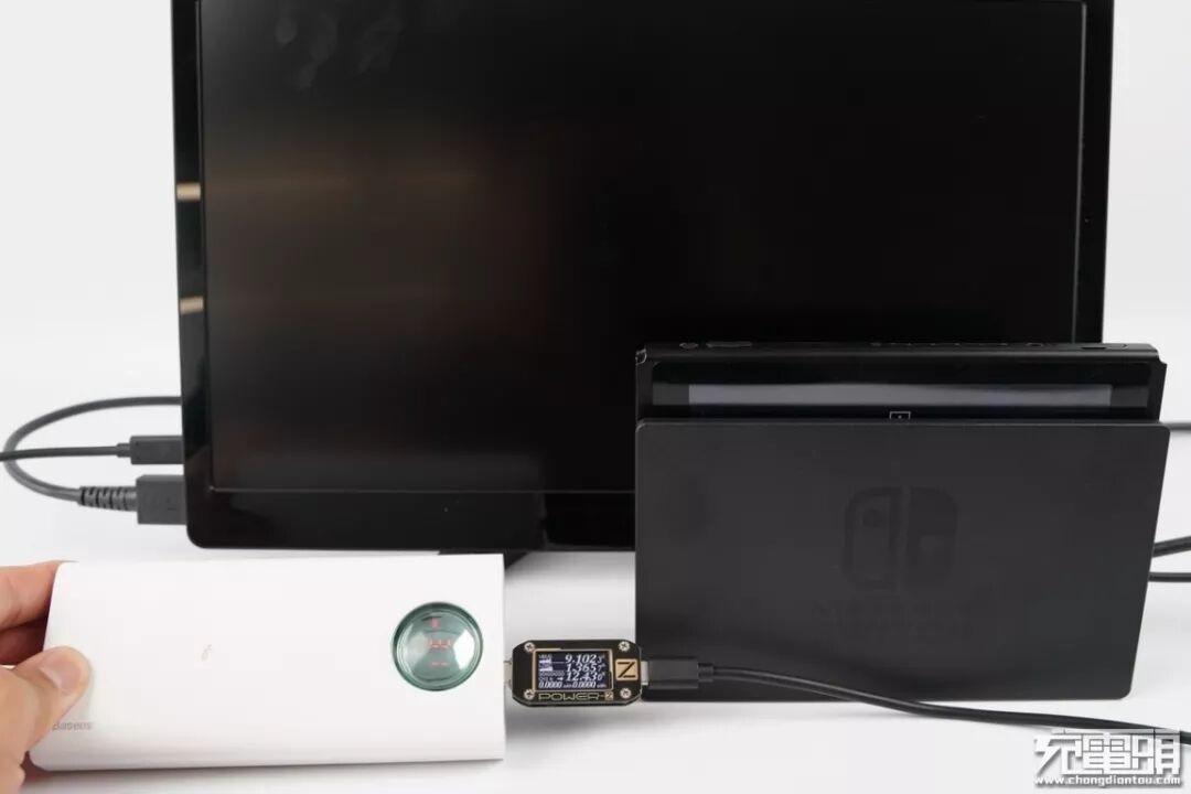 从图片上可见,Baseus倍思PPXCA移动电源在为任天堂Switch国行版在为底座模式充电时。电压9.16V 电流:1.34A 功率:12.36W 无法开启底座模式。
