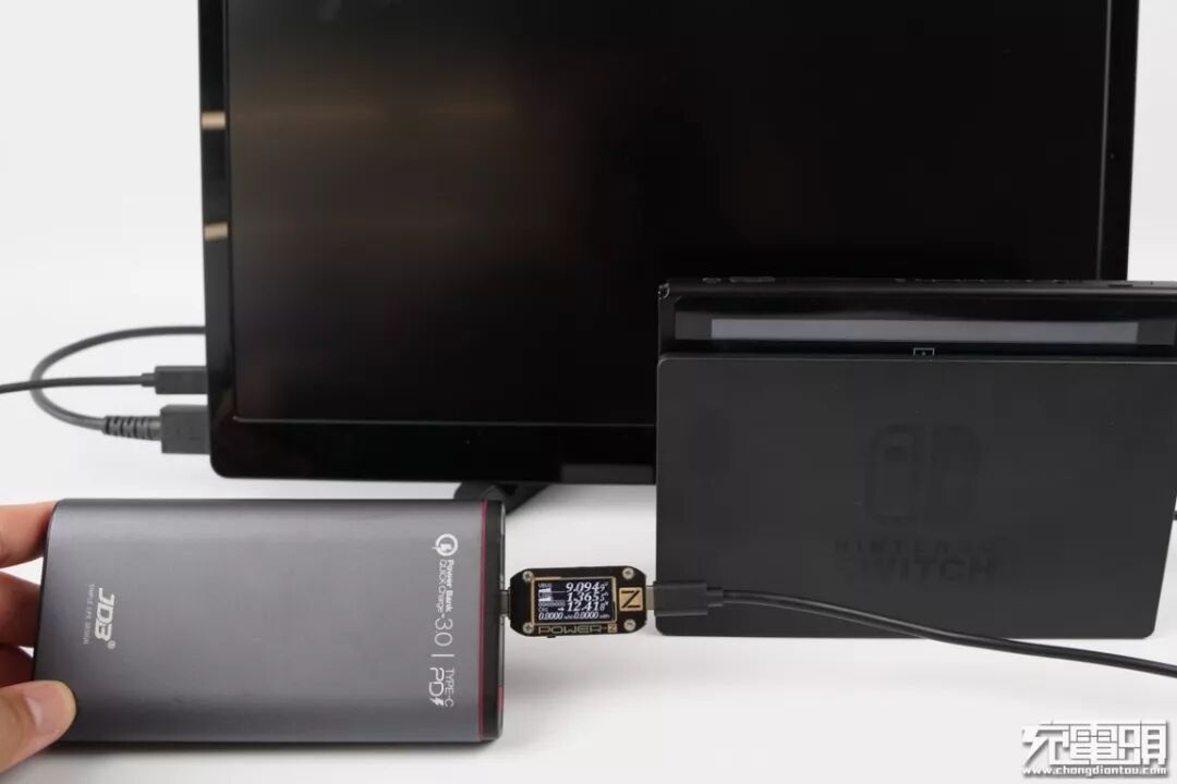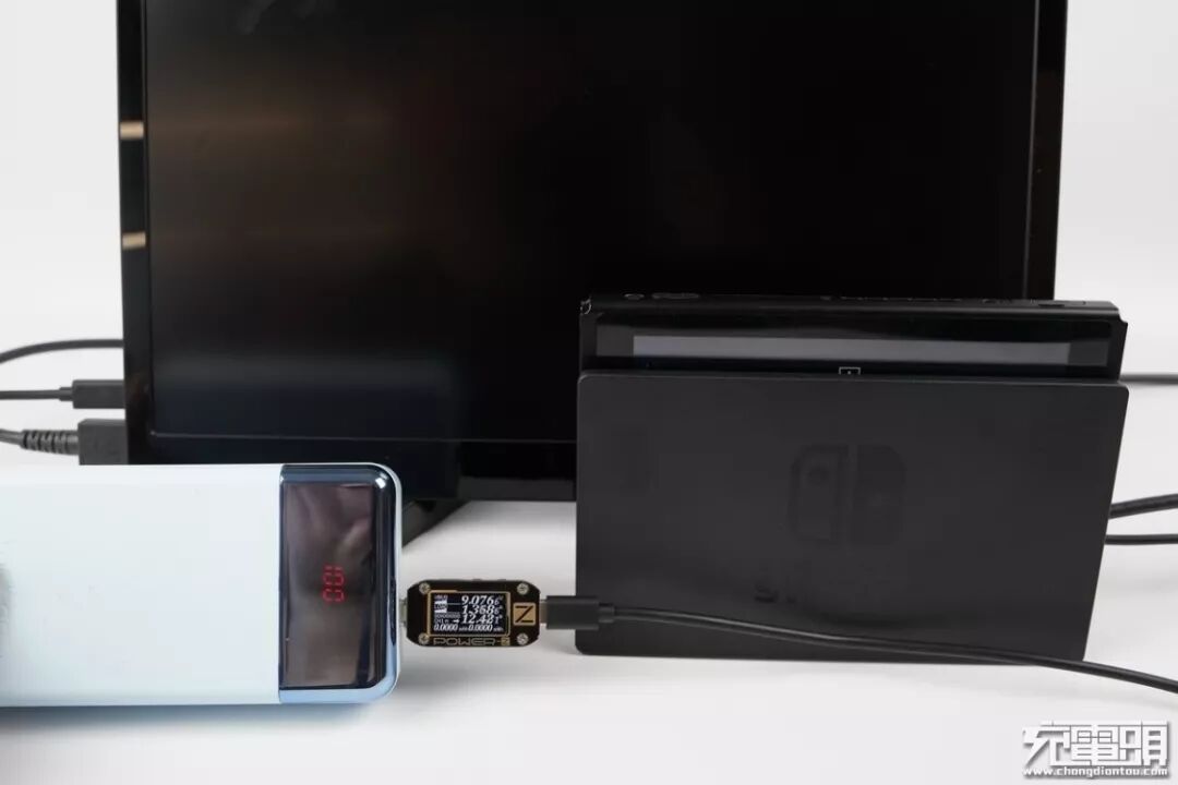 从图片上可见,JDB劲电宝 MAX i9 移动电源在为任天堂Switch国行版在为底座模式充电时。电压:9.09V 电流:1.36A 功率:12.41W 无法开启底座模式。