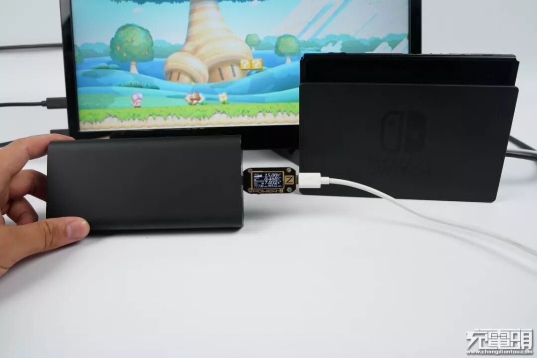 在更大容量移动电源对Nintendo Switch底座模式进行充电输出时,一部分移动电源成功握手15V电压档位,并且成功开启底座模式;其余的移动电源基本都是握手9V、12V电压档位,并且无法开启底座模式。
