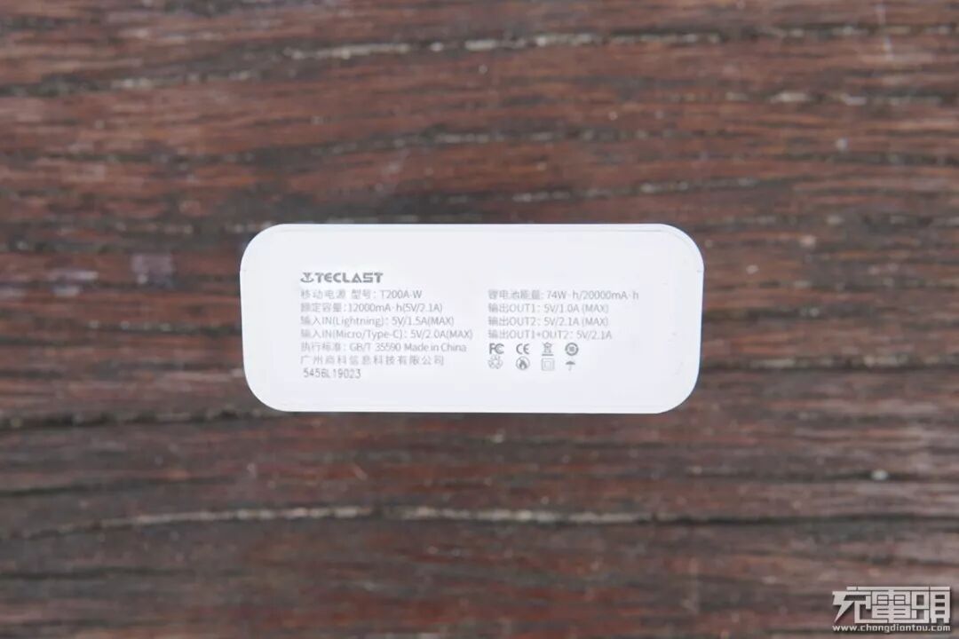 台电T200A具备两个USB-A输出接口,一个USB-C输入/输出接口,一个Lightning输入接口以及一个常见的MicroUSB输入接口。
