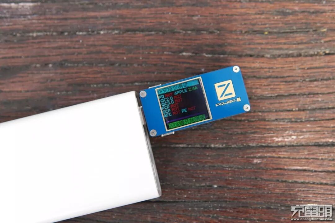 使用ChargerLab POWER-Z FL001S检测到OUT1接口支持的协议为Apple2.4A,也就是可以给iPhone、iPad以高于1A的电流充电。