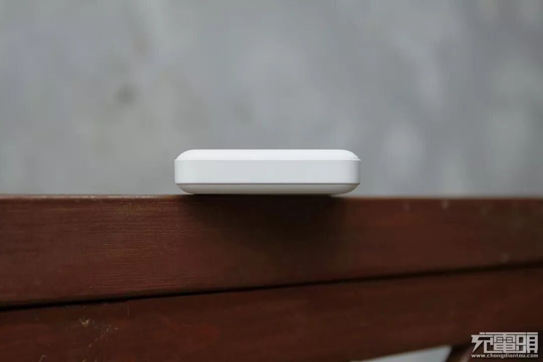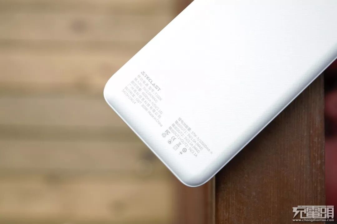 从底部可以看到移动电源的四周呈圆弧形,让移动电源看上去更显薄。