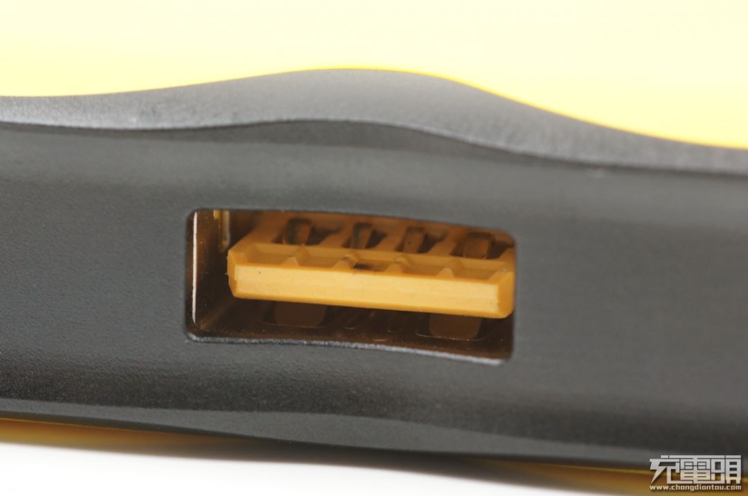 USB-A接口舌片为橙黄色,两边的金属触点略有加宽。