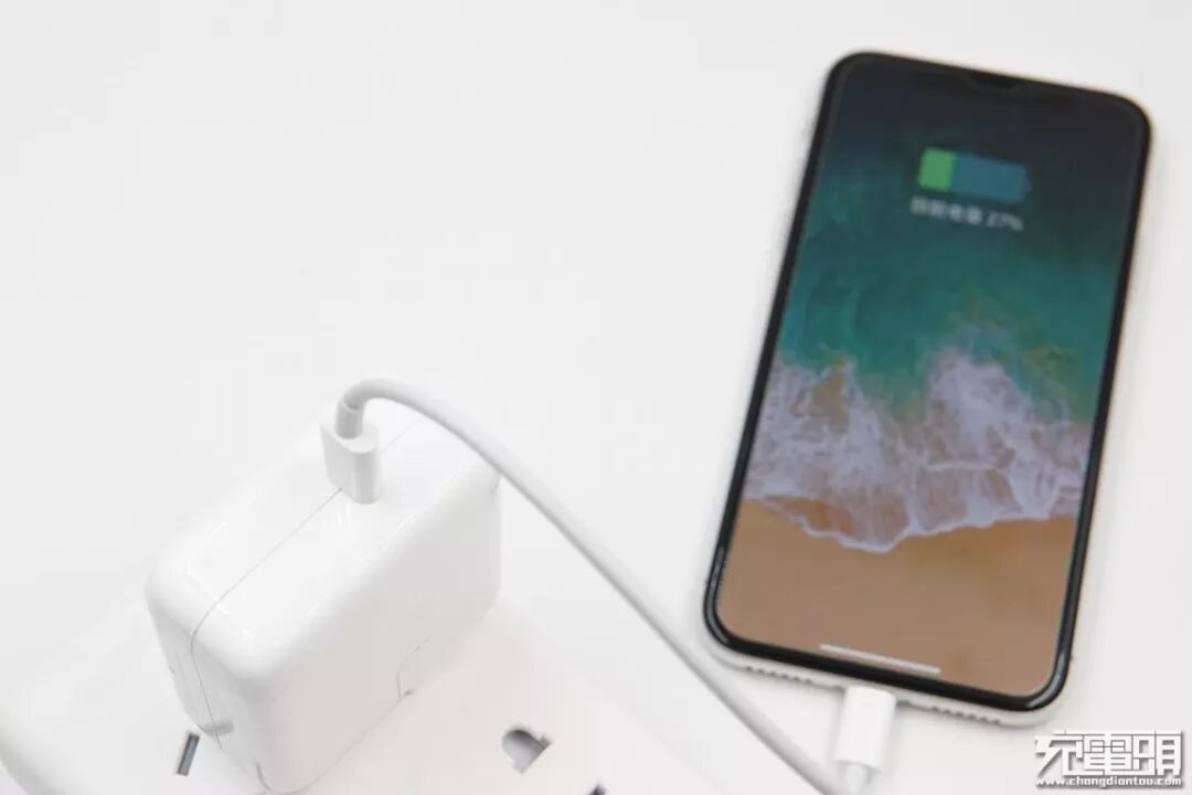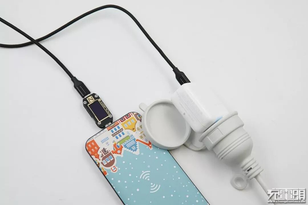 充iPhoneX,全程最大功率为16.24W,支持iPhoneX的USB PD快充,2小时16分钟充满;