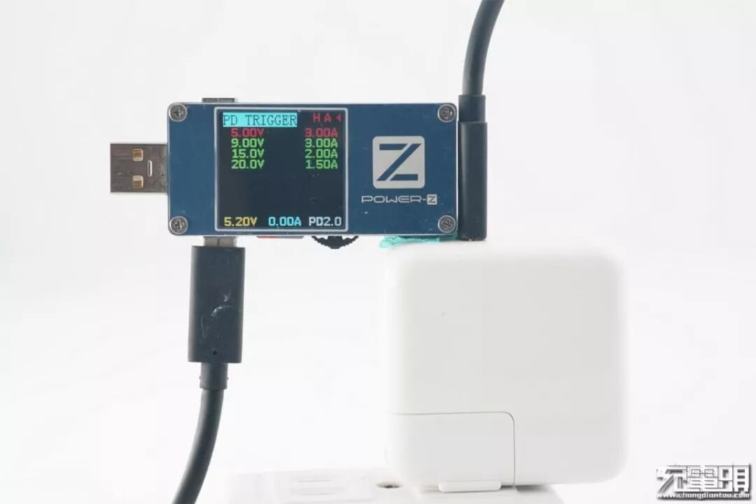 输出方面,使用ChargerLab POWER-Z 读取到的信息为:5V/3A、9V/3A、15V/2A、20V/1.5A,和充电器上标准的参数一致。
