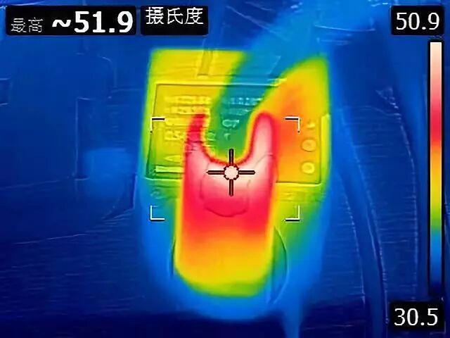 9V满载15min钟后温度为51.9℃,此时温度最高,可见9V的时候效率是比较低的,从之前的效率测试也可以看出来。