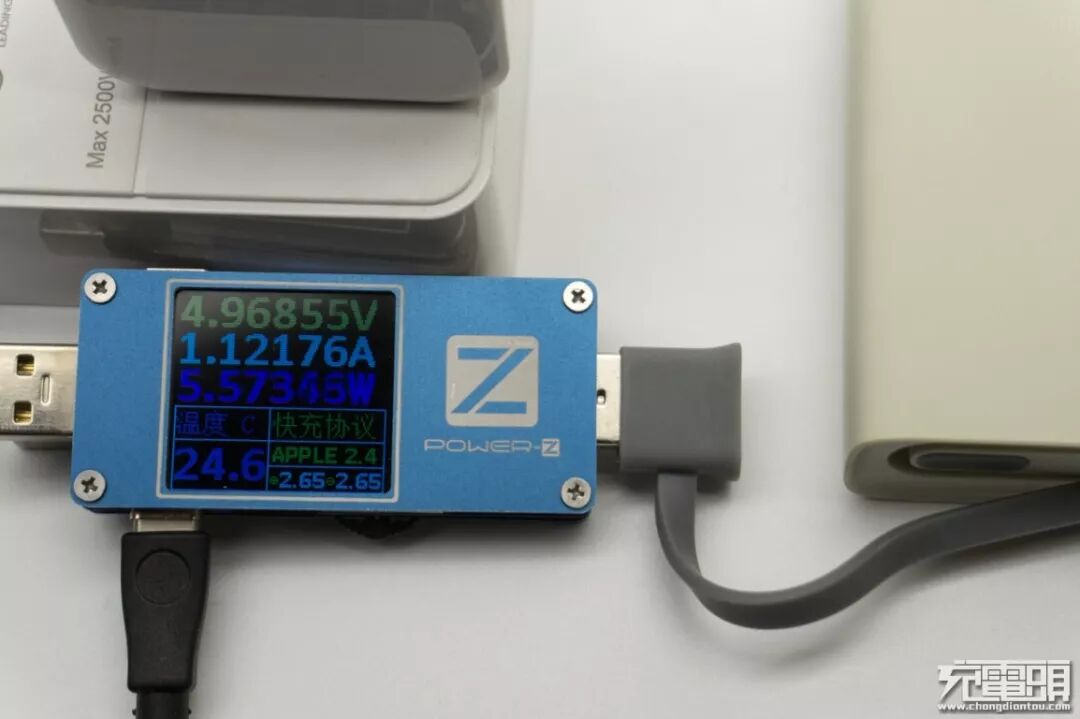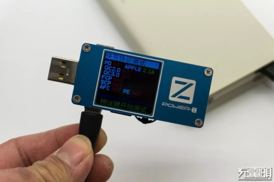 POWER-Z FL001S快充协议测试,显示支持苹果2.1A。