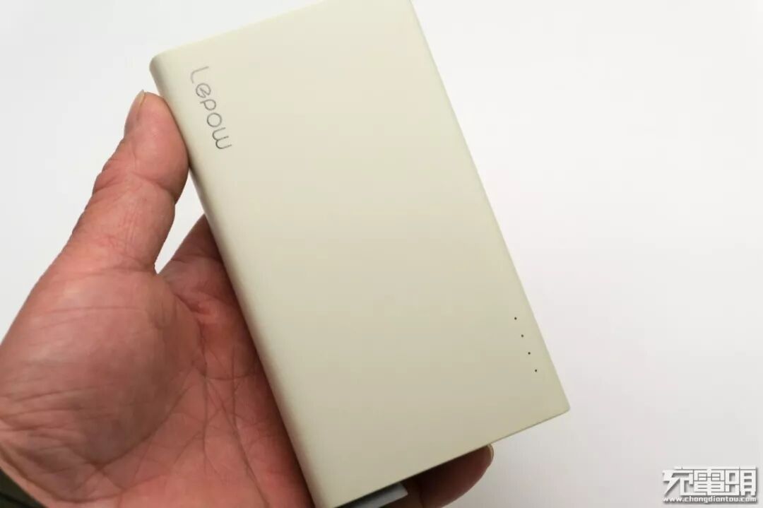 乐泡移动电源表面微磨砂处理,上手试用了一下防滑性优于大多数移动电源,表面抗指纹处理,到处留痕的缺点可以大大减轻。