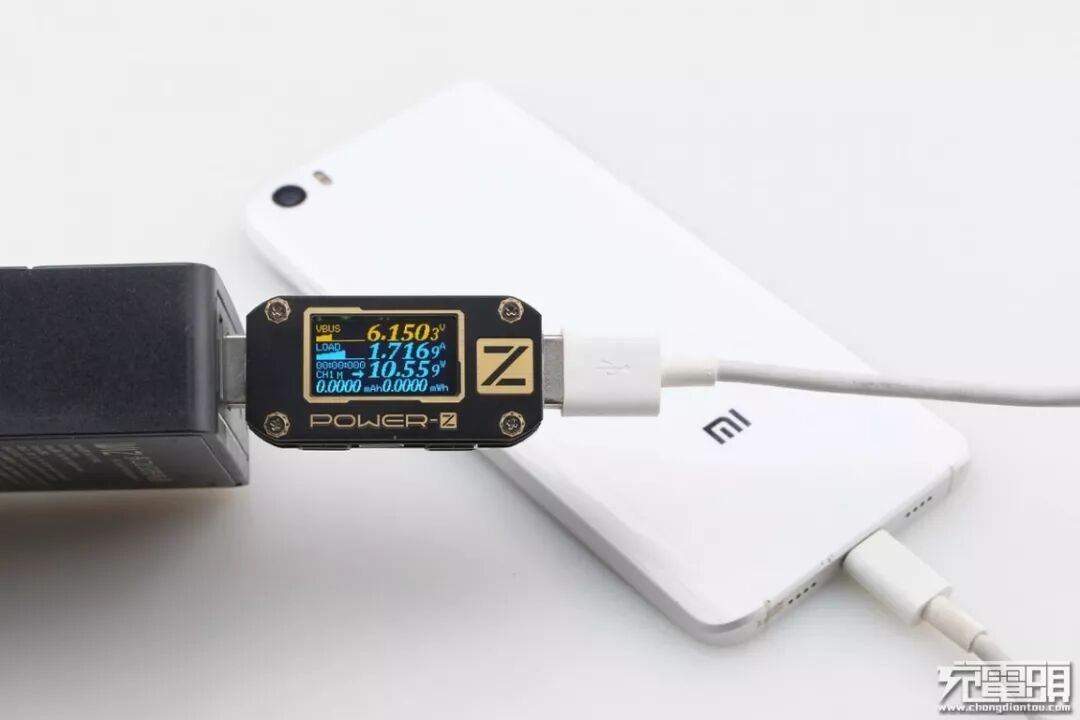 小米5只支持QC快速充电协议,使用USB-A为小米5充电,功率为6.15V 1.71A 10.55W,成功握手QC快充。