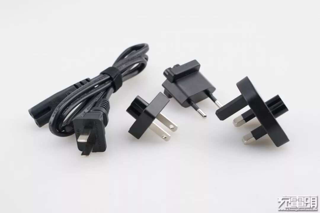 产品在包装内附带了8字电源延长线和三个旅行八字插头,方便用户在出门时可以无阻碍的使用。