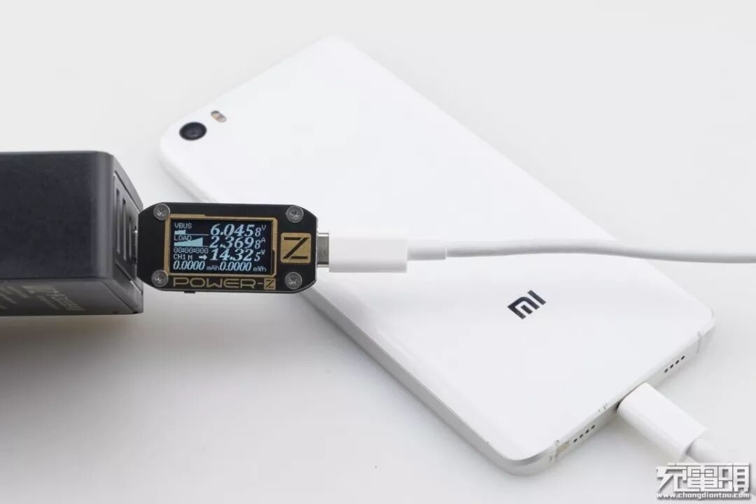 小米5只支持QC快速充电协议,使用USB-C2为小米5充电,功率为6.04V 2.36A 14.32W,成功握手QC3.0快充,并达到QC快充功率最大阶段。
