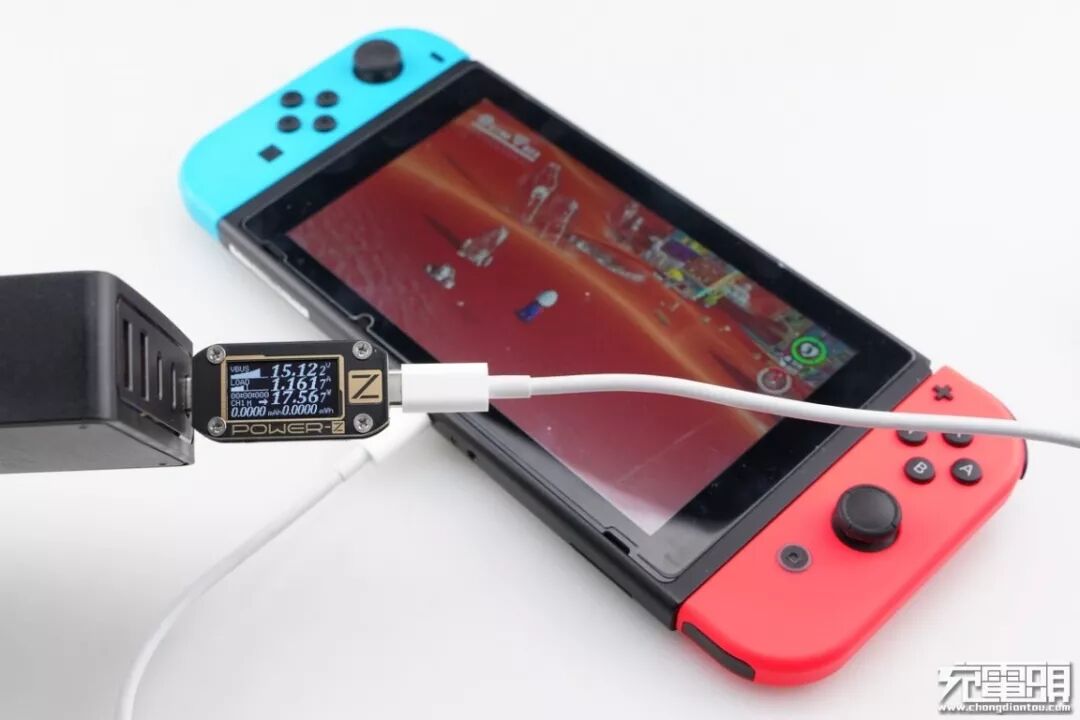 Switch支持USB PD快速充电,使用USB-C1为Switch充电,功率为15.12V 1.16A 17.56W,成功握手USB PD快充,并达到USB PD快充功率最大阶段。
