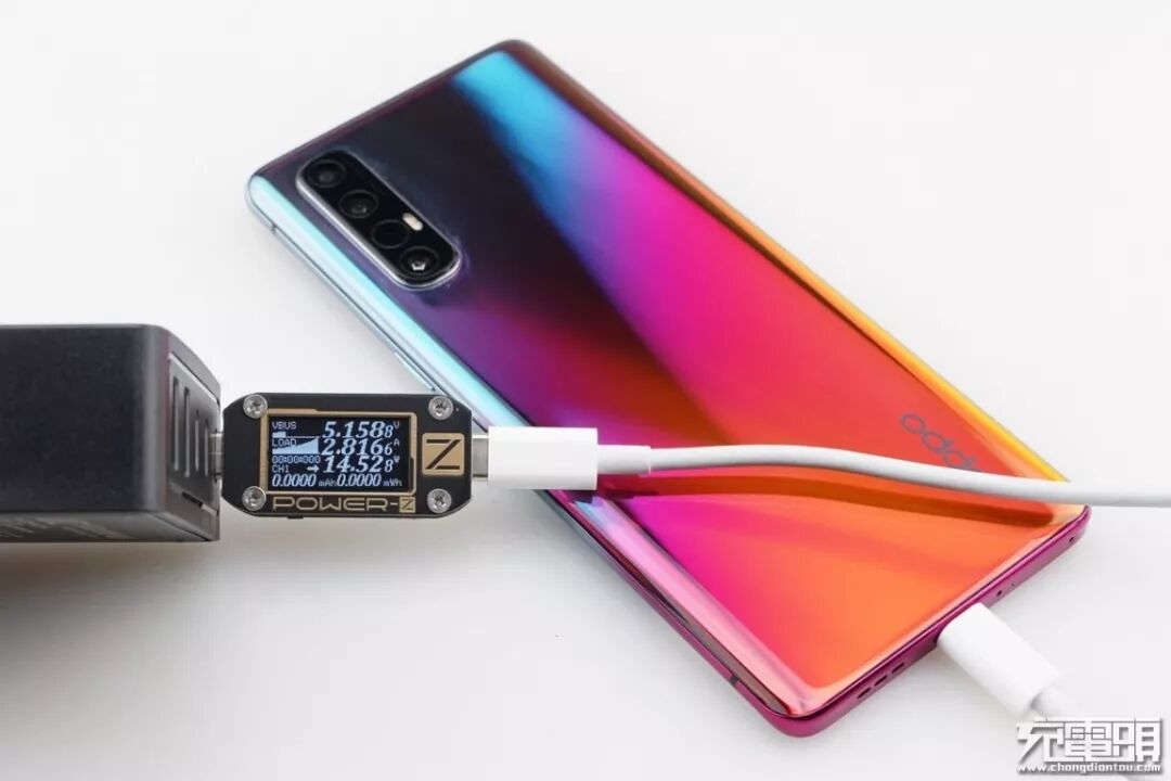 Reno3支持USB PD / VOOC4.0快速充电协议,使用USB-C2为Reno3充电,功率为5.04V 2.24A 11.30W,成功握手USB PD快充。
