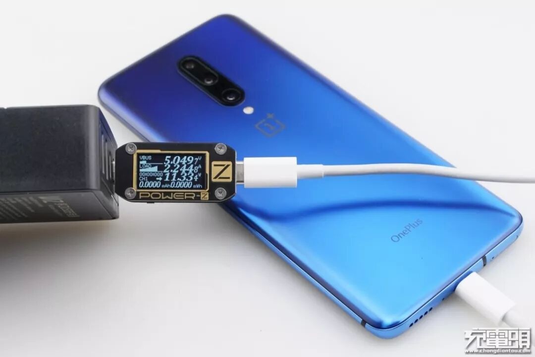 1+7 Pro支持USB PD / WARP快速充电协议,使用USB-C2为1+7 Pro充电,功率为5.04V 2.24A 11.33W,成功握手USB PD快充,并达到USB PD快充功率最大阶段。