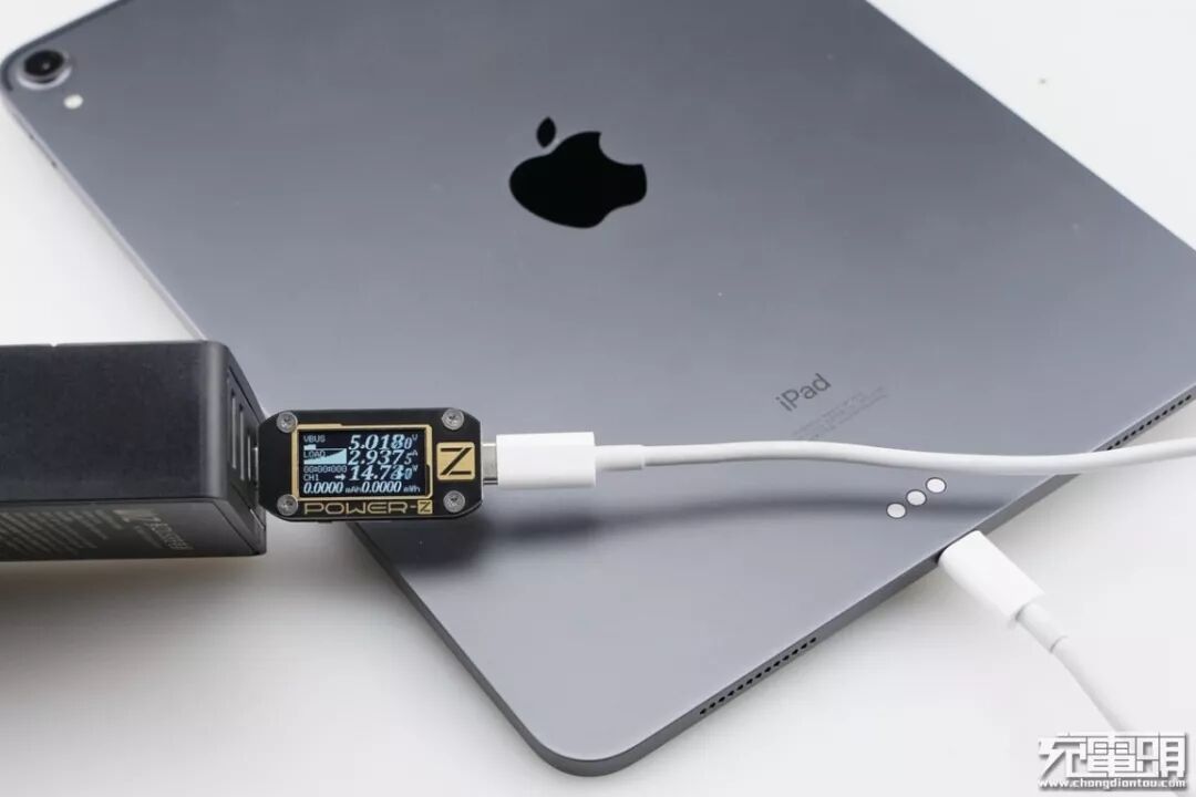 iPad Pro支持USB PD快速充电,使用USB-C2为iPad Pro充电,功率为5.01V 2.93A 14.73W, 可以正常充电,但无法握手快充,普通充电模式。