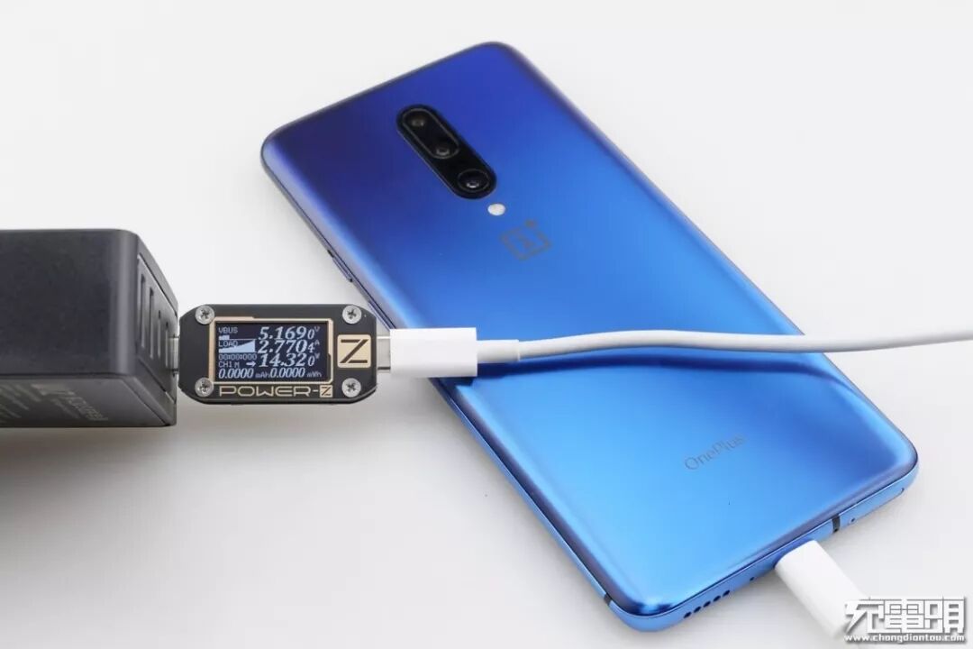 1+7 Pro支持USB PD / WARP快速充电协议,使用USB-C1为1+7 Pro充电,功率为5.16V 2.77A 14.32W,成功握手USB PD快充,并达到USB PD快充功率最大阶段。