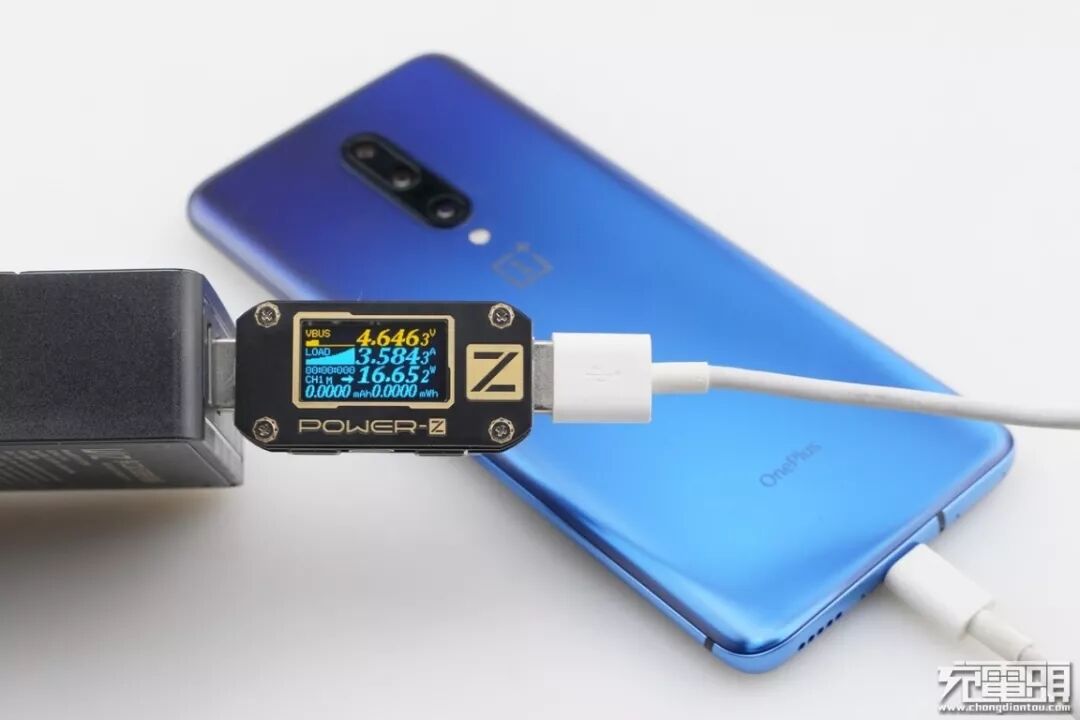 1+7 Pro支持USB PD / WARP快速充电协议,使用USB-A为1+7 Pro充电,功率为4.64V 3.58A 16.65W,