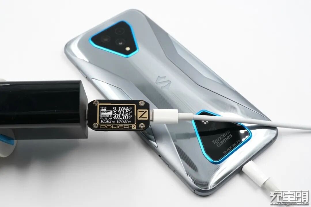 黑鲨3 Pro支持65W SQC极速闪充 / PD / QC快充,努比亚55W充电器对黑鲨3 Pro,功率9.10V 5.31A 48.38W,握手65W SQC极速闪充。