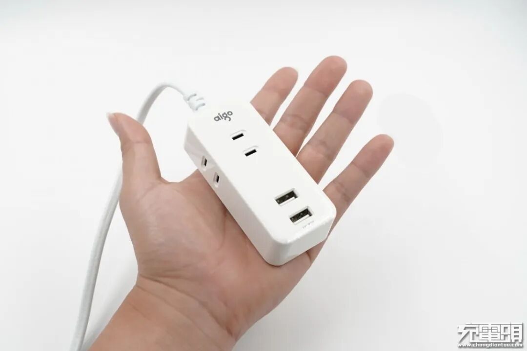 小编对插线板的概念就是大尺寸板砖一样,aigo爱国者延长线插座小巧的完全不像插座,修长条形设计的座体只有一个手掌大小。