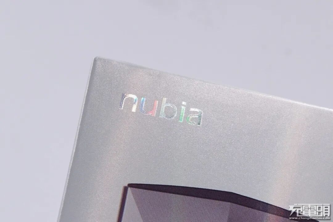 外包装的正面左上角,带有“nubia”的Logo标识,而且每个字母在灯光的照射下还分别展示出了不同颜色,很是新颖。