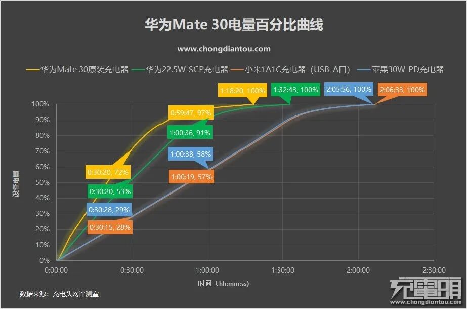2、40W SCP到底有多快?华为Mate30 有线充电评测大比拼
