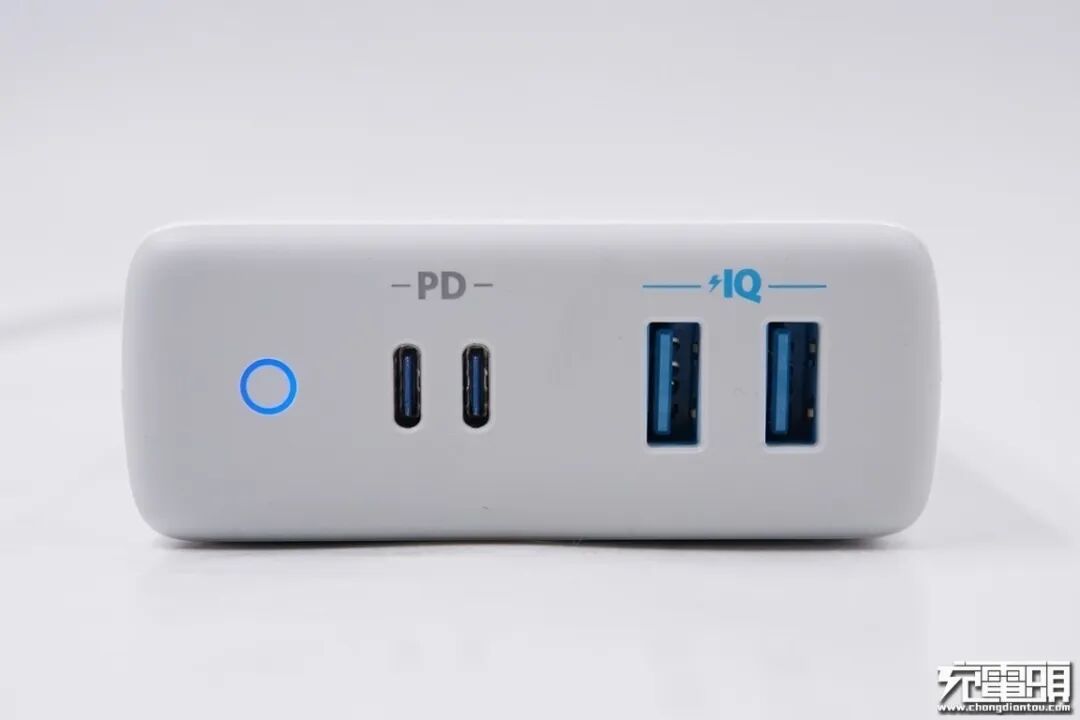 Anker PowerPort Atom PD 4 100W充电器设计简洁,外观圆润,手感上乘。作为桌面充电器,其重量、体积与输出功率性能比较均衡。配备的4个USB接口涵盖了USB-A与USB-C这两种市面上使用率最广的接口,可以满足USB PD用户充电需求。