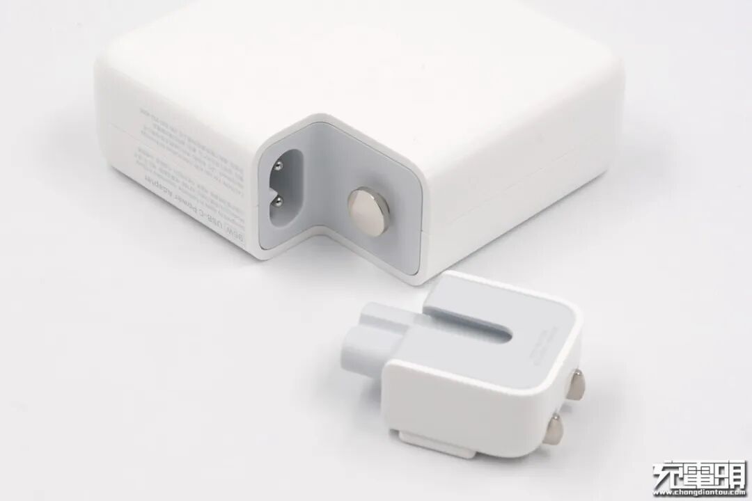 苹果96W USB-C电源适配器采用了可拆卸插脚设计,还支持更换全球旅行转换器,支持其它标准的插脚吗,出国旅行时可以带上相应国家的插脚。金属固定座表面非常光滑,工艺精美,该固定座还是充电器的接地脚,替换成苹果三脚插头后接地功能生效。