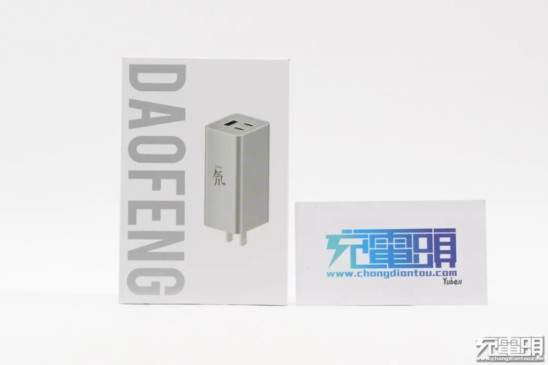 努比亚氮化镓充电器采用了白色厚纸盒做外包装,封面印有充电器外观,还带有银色 “DAOFEN” 氘锋拼音。