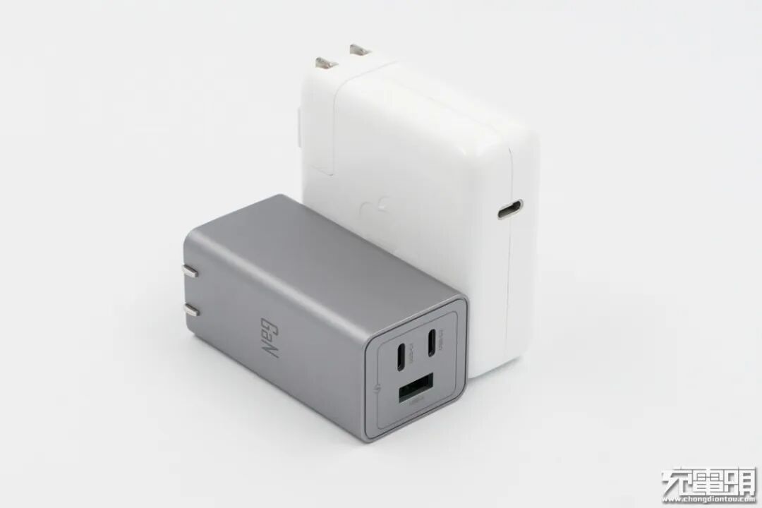 努比亚65W氮化镓充电器与苹果61W充电器对比,努比亚充电器内部采用氮化镓功率器件体积大幅度减少,并且拥有更大的输出功率与更多的输出接口。