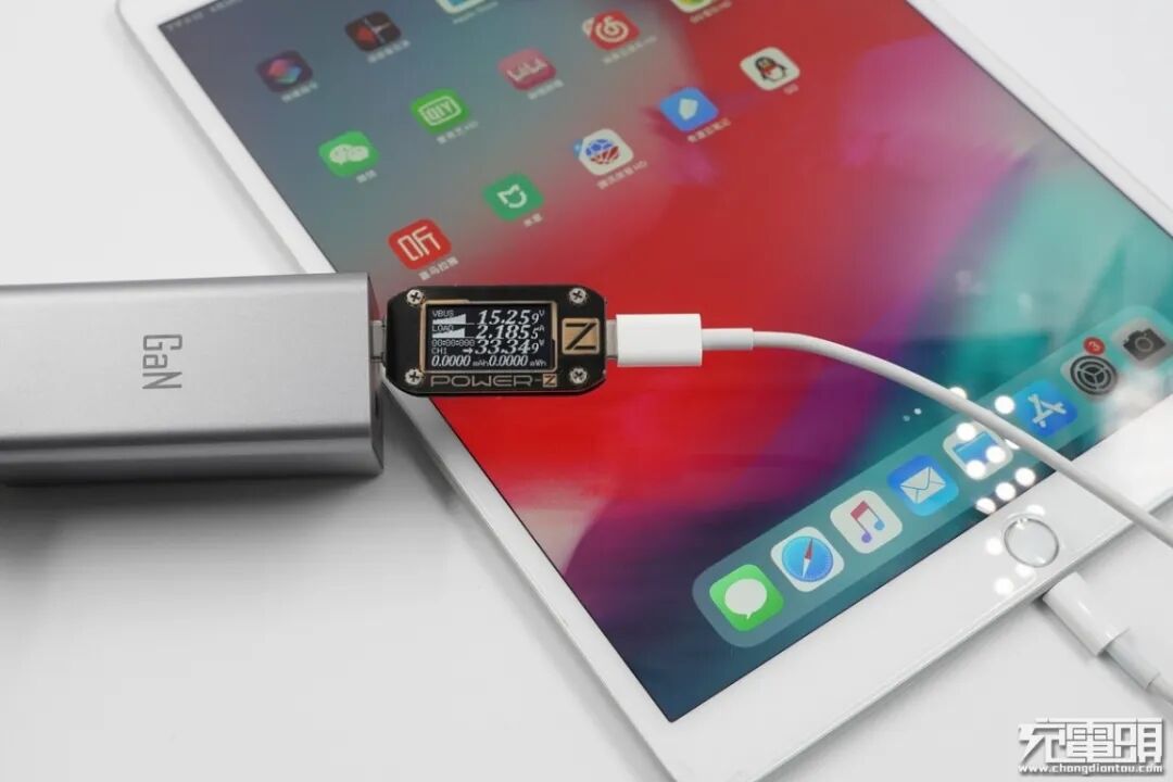 iPad Air3支持USB PD和Apple2.4A快速充电协议,使用USB-C1为iPad Air3充电,功率为15.25V 2.18A 33.34W,成功握手USB PD快充,并达到PD快充功率最大阶段。