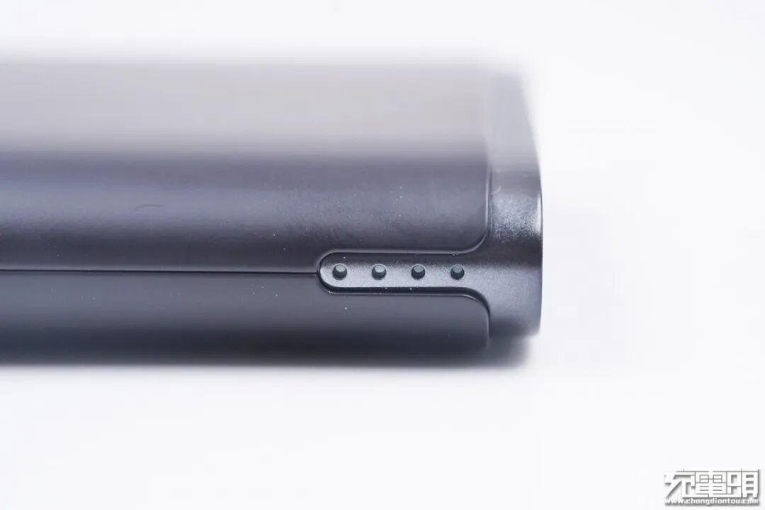 再来看一下移动电源的指示灯,最左侧的电量指示灯已经变成了蓝色,结果已经很明显了,左侧电源指示灯在承担着显示剩余电量的同时也在担当着快充显示的义务,当移动电源为vivo手机充电的时候握手了FlashCharge闪充,指示灯就会变成蓝色表明正在进行FlashCharge充电。