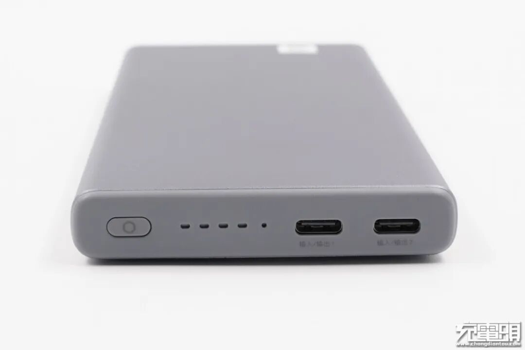 接口配置方面为双USB-C的接口,并且双USB-C均支持双向加速充电,无论是为移动电源自身恢复电量还是为设备充电均可以实现快充,USB-C支持PD快充协议,支持5V 3A、9V 2.77A两个固定电压档位,额外还支持3.3-5.9V 3A和3.3-11V 2.75A两组PPS档位。
