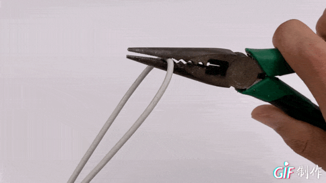 使用尖嘴钳将线材掐住,然后用力摇晃,来看一下线材的“磨损”情况。
