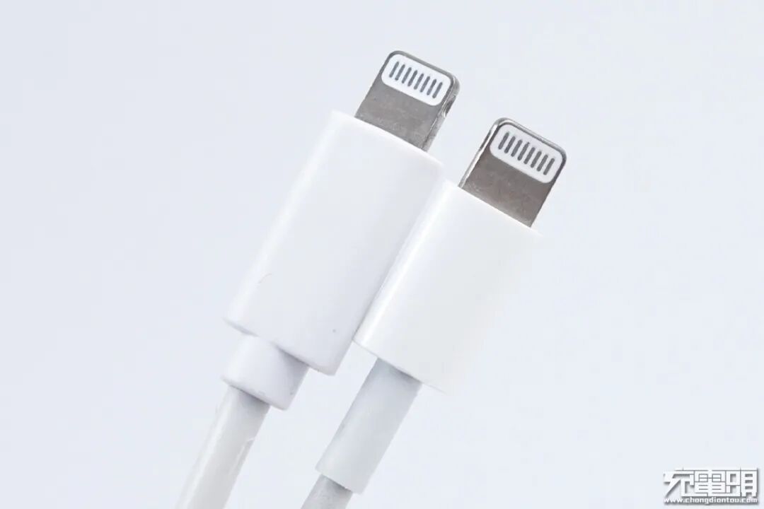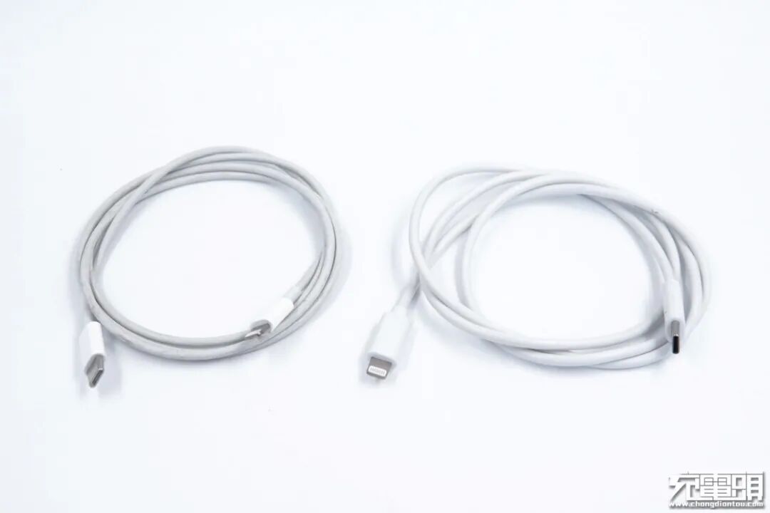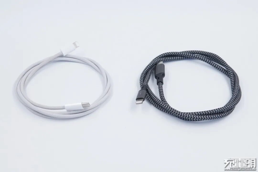 首先来看一下TPE材质的两根线材,在线材的种类上二者均为C to Lightning的快充线,但在细微之处却存在着不同。