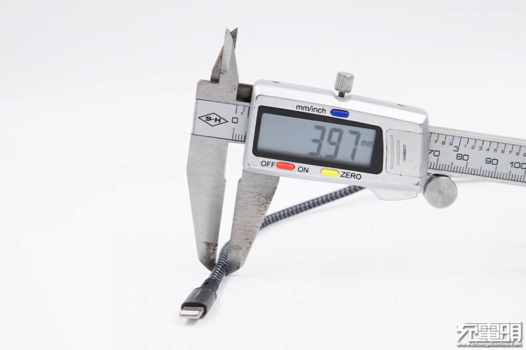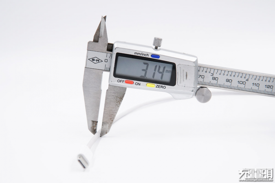 第三方线材C to Lightning快充线的线材直径约为3.32mm。
